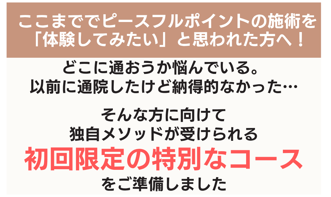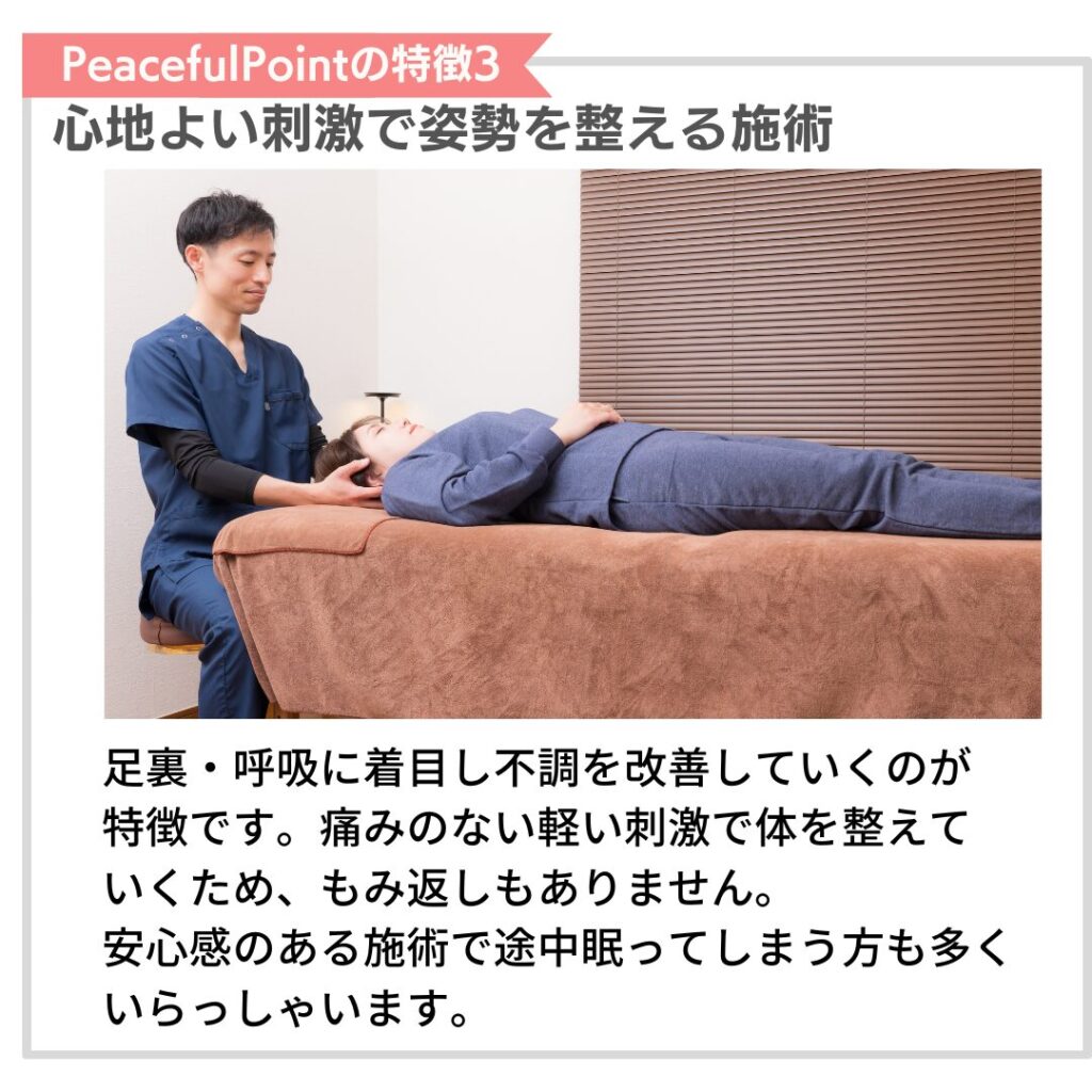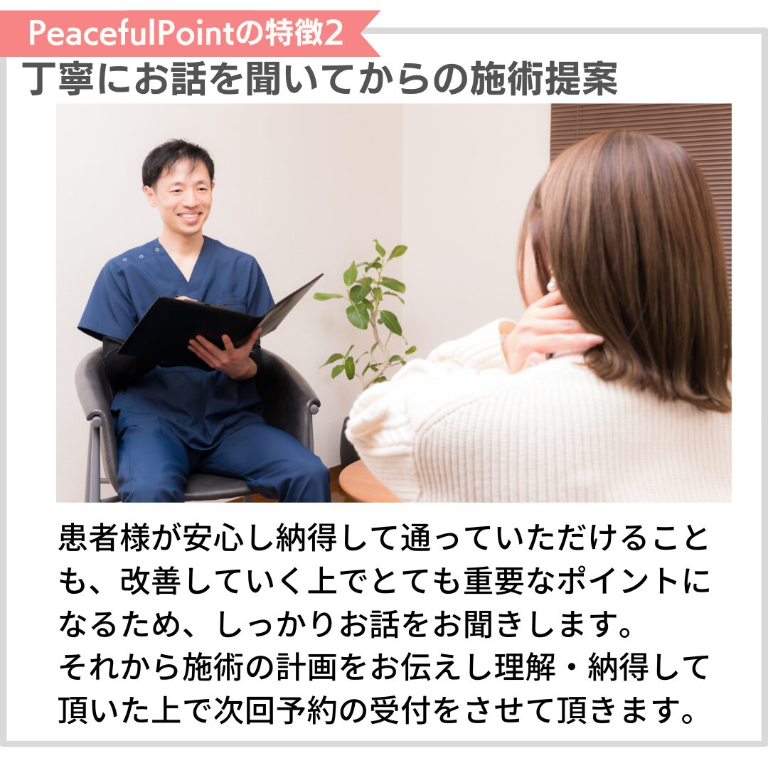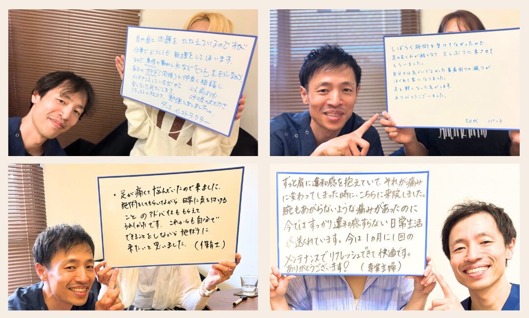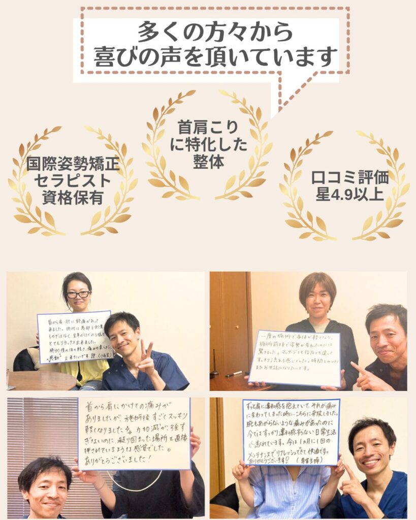 に投稿されました ユリッチTrustindex は、レビューの元のソースが Google であることを確認します。 腰痛が気になり来院しました。最初は日常生活でも違和感がありましたが、4回目の施術あたりからかなり楽になり、動きやすさを実感できるようになりました。 サロンの雰囲気は落ち着いていてリラックスでき、安心して通える空間です。先生もとても話しやすく、その時の状態をしっかり見ながら丁寧に施術してくださるので信頼できます。 毎回、施術前後に写真を撮っていただくのですが、その変化に驚きます。見た目も引き締まったように感じられ、身体のバランスが整っているのがよく分かります。 また調子が悪くなった際にはぜひお願いしたいと思います。ありがとうございました。に投稿されました 中村未紀Trustindex は、レビューの元のソースが Google であることを確認します。 施術直後はどう良くなったかがわかりませんでしたが、翌日になんとなく体が楽になっているような気がしました。偏頭痛持ちで、今回利用させていただいたので、今後も通ってみようと思います。に投稿されました M HTrustindex は、レビューの元のソースが Google であることを確認します。 長年、下半身太りと猫背に悩んでいましたが、ここに通って原因が「姿勢や体の使い方」にあることを丁寧に教えてもらえました。 毎回説明がとても分かりやすく、納得しながら受けられるので安心感があります。 正しい立ち方や歩き方を意識するだけで呼吸が楽になり、日常生活がかなり快適になりました。 目線も自然と前を向くようになり、自分でも姿勢の変化を実感できています。 その場だけ楽になるのではなく、根本から整えてくれる整体だと思います。 先生もとても信頼できるので、これからも通い続けたいです。 姿勢改善や体型に悩んでいる方にぜひおすすめしたい整体です。に投稿されました レオTrustindex は、レビューの元のソースが Google であることを確認します。 落ち着いた雰囲気のお部屋でアロマかな?良い香りも心地よかったです。 問診票の記入と全身の写真を撮っていただいてからの施術です。 施術自体は痛みを感じることなく、丁寧に説明してくださったりアドバイスもいただけるし、自宅でも出来ることを教えてくださいます。 施術後の体はスッキリした感覚でした。 ありがとうございます!に投稿されました ユウTrustindex は、レビューの元のソースが Google であることを確認します。 慢性的な首から肩にかけての鈍痛、肘の痛みと腕の痺れがあり、来店しました。初めての来店で不安でしたが、丁寧な問診に、先生の人柄がよく表れていて、施術も安心して受ける事ができました。 患部に刺激を与えない方法は、他の整骨院やマッサージ店とは全く違っていて、痛みとは関係が無いと思う場所も、実は関わりが深いそうで、こちらから色々と質問した事に対して、丁寧な説明を受けながら、全身の筋肉をほぐして下さる優しい施術でした。 清潔感漂う、落ち着いた暖色系の照明を使用した、アロマの香りのする素敵な空間にピッタリな施術で、気がつくと少し眠っていました。施術前とは比べられないほど全身が軽くなり、驚くほど痛みがなくなりました。 仕事に家事に追われ、自分の時間、リラックス出来る時間が限られている方に、是非行ってみて欲しいです。ハマると思います、自分へのご褒美も兼ねて、今後も通いたいと思いました!実際に施術を受けた翌日から1週間ほど経ちますが、痛みや痺れは無く過ごせています。 即効性もありましたが、この効き目を持続させる為のセルフケアの方法を教えて下さる点も、他店とは違う魅力を感じました。筋肉がほぐれる事で、血行も良くなったのか、むくみも軽減されています。 セルフケアの効果も実感していますが、痛みを再発させない為にも、また行きたいと思います!!に投稿されました RTrustindex は、レビューの元のソースが Google であることを確認します。 お世話になって1ヶ月ほど経ちました。 もう何年も前から右肩甲骨、右肩、右首筋、頭痛がありかなり辛い思いをしていました。 側湾症で(手術はしたが)やはり今までの蓄積は大きく体のバランスが悪く色んなところにも症状が出てました。 けど、先生に施術をしていただいた後はすごくバランスが良くなり体がすごく動きやすく生活がしやすくなりました! 主訴だったところも良くなるのを期待しこのままお世話になろうと思います^ ^ 先生も気さくで話しやすく、個人でしてらっしゃるので整骨院みたいなバタバタ感がなく ゆっくり丁寧にしてもらえるのでとても良いです⭐︎ 私みたいに側湾症で辛い思いをしている人、 肩や首からがしんどい人にぜひおすすめしたいです!に投稿されました くるりんTrustindex は、レビューの元のソースが Google であることを確認します。 慢性的な腕の痛みがあり、重だるく、日によっては痛みが酷かったり、痺れたり。病院に通院もした事はありましたが、特に骨や筋に